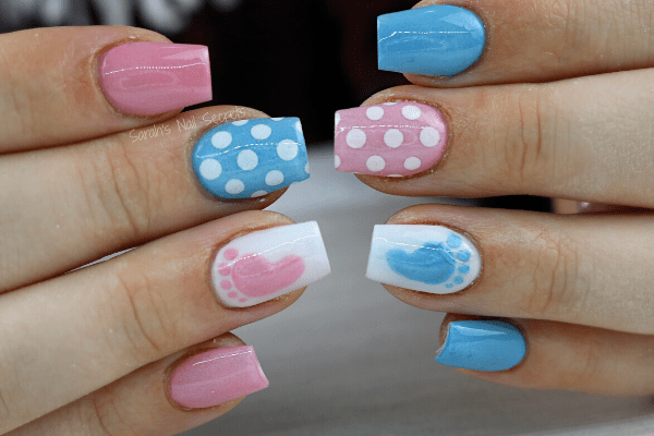 - This nail art design is perfect for your baby’s gender-reveal party. Wanna try it? Go for it!